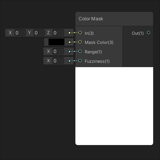 | Masks values of input In on channels selected in dropdown Channels. | Creates a mask from values in input In equal to input Mask Color. |