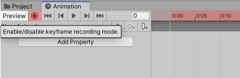 - Open the Animation window, and select the GameObject from step 3. Create a new Animation Clip if required.