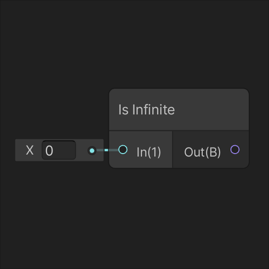 | Compares the two input values A and B based on the condition selected on the dropdown. | Returns true if any of the components of the input In is an infinite value. |