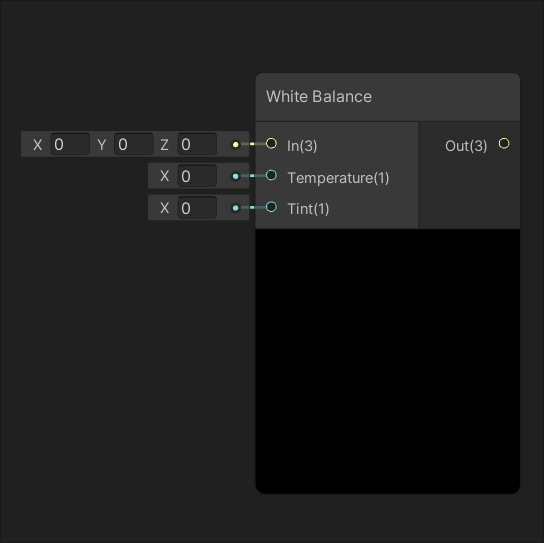 Adjusts the temperature and tint of input In by the amount of inputs Temperature and Tint respectively.