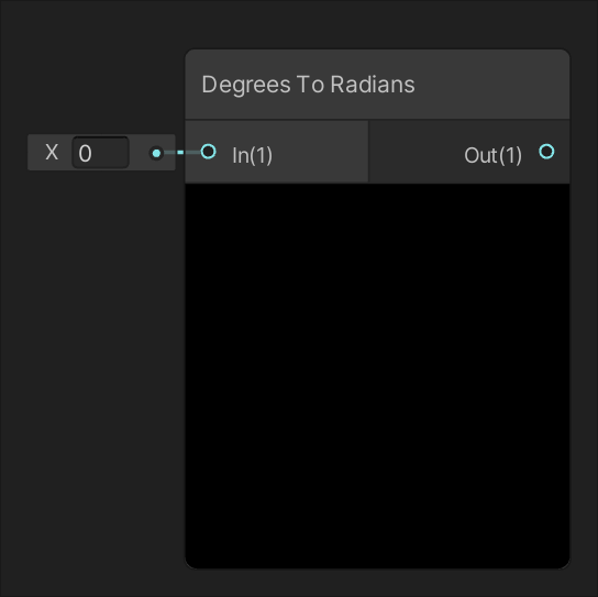 Returns the cosine of the value of input In. Returns the value of input In converted from degrees to radians.