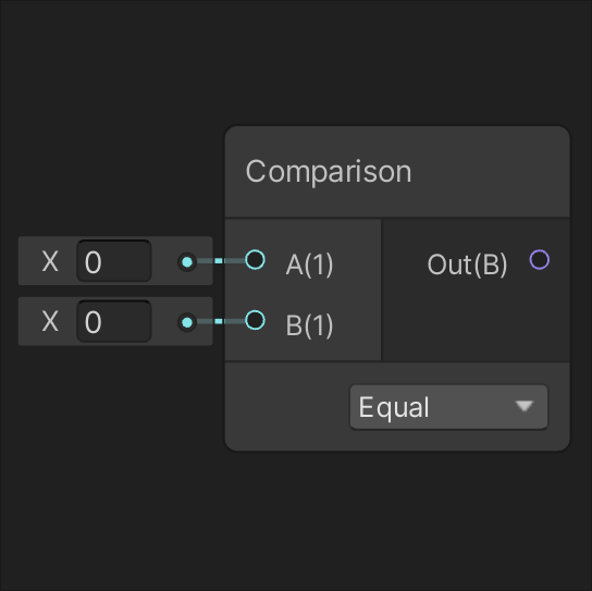 | Compares the two input values A and B based on the condition selected on the dropdown. | Returns true if any of the components of the input In is an infinite value. |