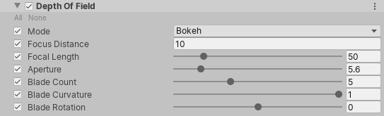 The Bokeh Depth of Field mode closely imitates the effect of a real-life camera. For this reason, the settings are based on real-life camera settings, and offer a number of properties to adjust the diaphragm blades on the Camera. For an introduction to diaphragm blades and how they affect the visual quality of your Camera output, see Improve Photographys guide Aperture Blades: How many is best?.