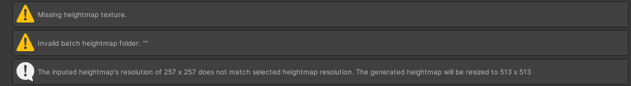 The information and warning boxes inform you if there is missing data, or if the selected Texture settings differ from that of the Terrain.