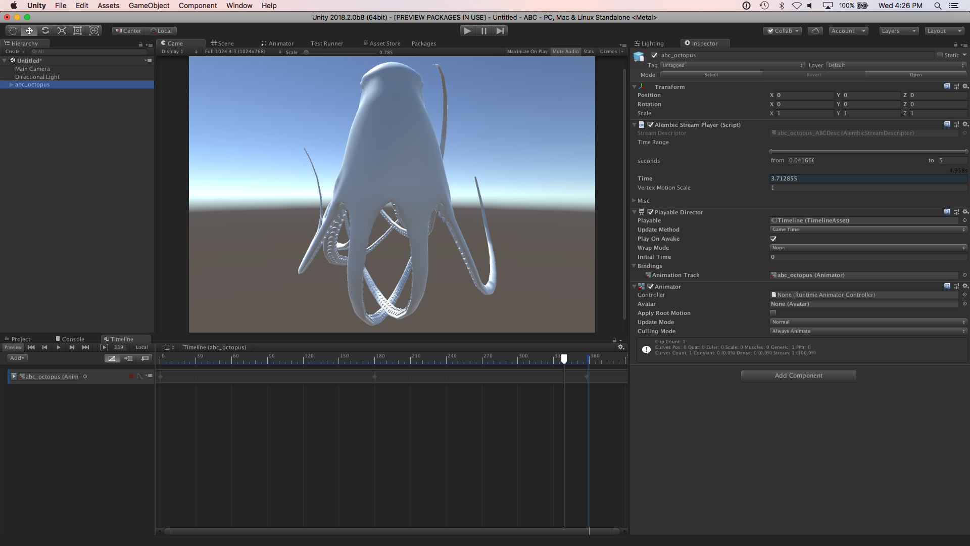This quick tutorial covers adding Alembic assets to your Project and using them in Unity. It demonstrates importing and playing back Alembic content.
