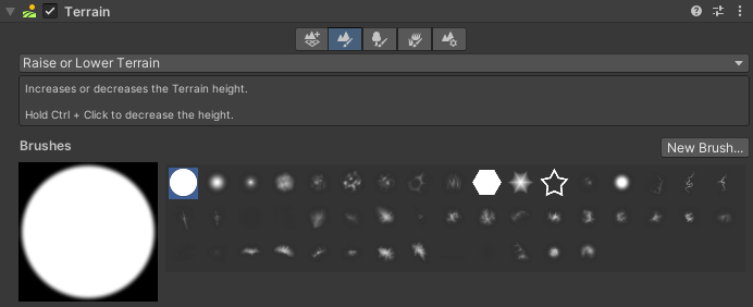 You can also create your own custom Terrain painting tools. For more information, see TerrainAPI.TerrainPaintTool and Create a custom Terrain tool.