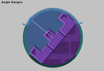 You can edit a range by entering new values into Start and End, or drag either endpoint of the tool to the desired angles. A range cannot be extended into an existing neighboring range. To delete an Angle Range, select the range and then press the Del/Delete key.
