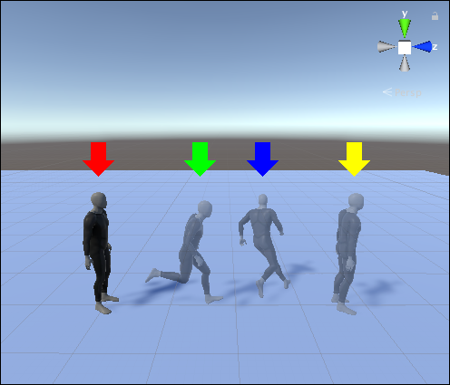 For example, three Animation clips create an animation sequence that starts with a clip of a standing humanoid that starts to run, then turns left, and finally comes to a stand still.