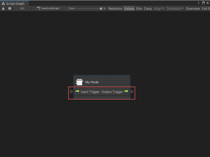 Succession(inputTrigger, outputTrigger); //To display that the input trigger port input will exits at the output trigger port exit. Not setting your succession also grays out the connected nodes but the execution is still done.